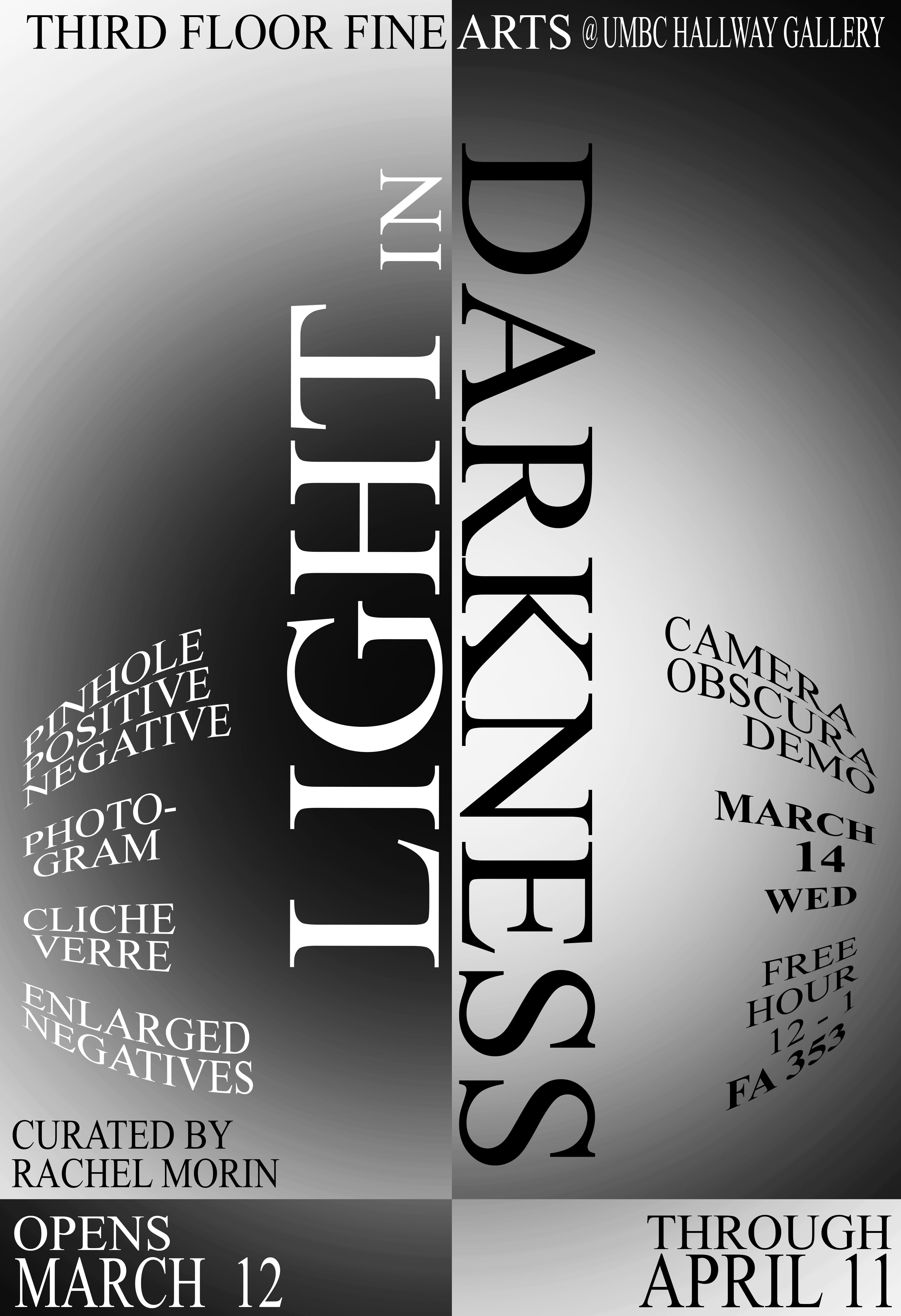 Exhibition featuring the black and white photographic work of students in Photo classes and ART211. Camera Obscura Demo on Wed March 14 12-1pm, FA353.