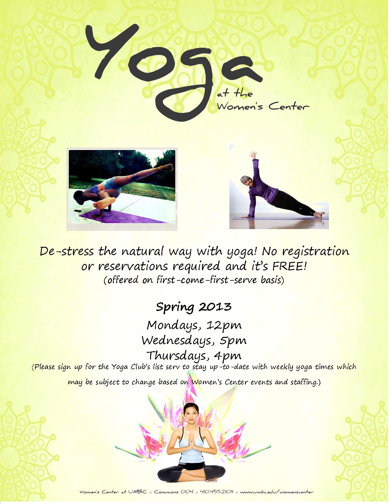 Join the Yoga Club for some mediation and healthy stretching in the Women's Center.
